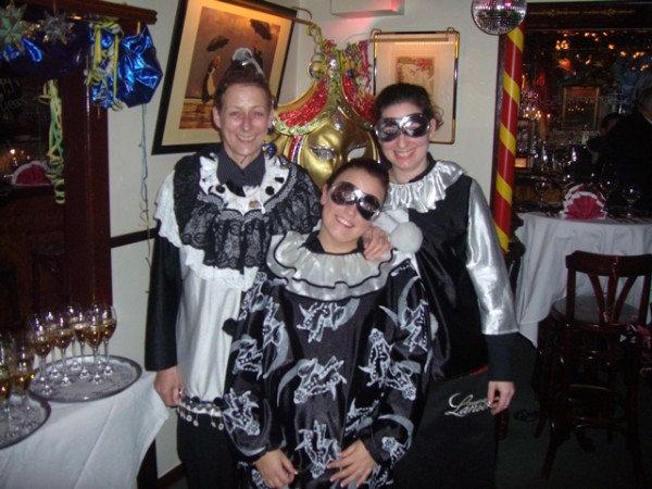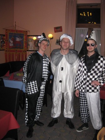 Pierotkostüme für Servicekräfte zum Silvesteball 2007/2008 im "Salon 1900" in Keitum/Sylt.
