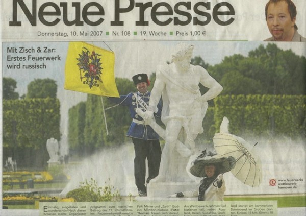 Für das Ausrichterland Rußland am 17.06.2006 und am 12.05.2007 beim Feuerwerkswettbewerb Hannover stellten wir den Zar Nikolaus II und die Zarin Alexandra in der Zeit um 1910 dar.