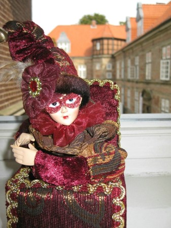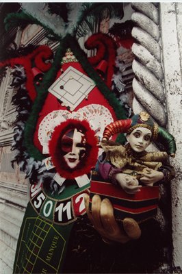 Spieluhr Harlekin oder Jocker, passend zum Kostüm Fortuna. Präsentiert beim Karneval in Venedig 2001.