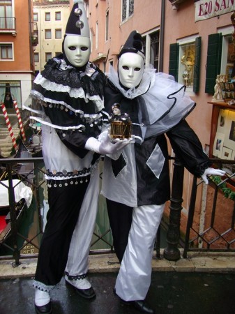Die gleiche Spieluhr "Pirot". Die beiden schwarz-weiße Kostüme wurden beim Karneval in Venedig 2006 präsentiert.